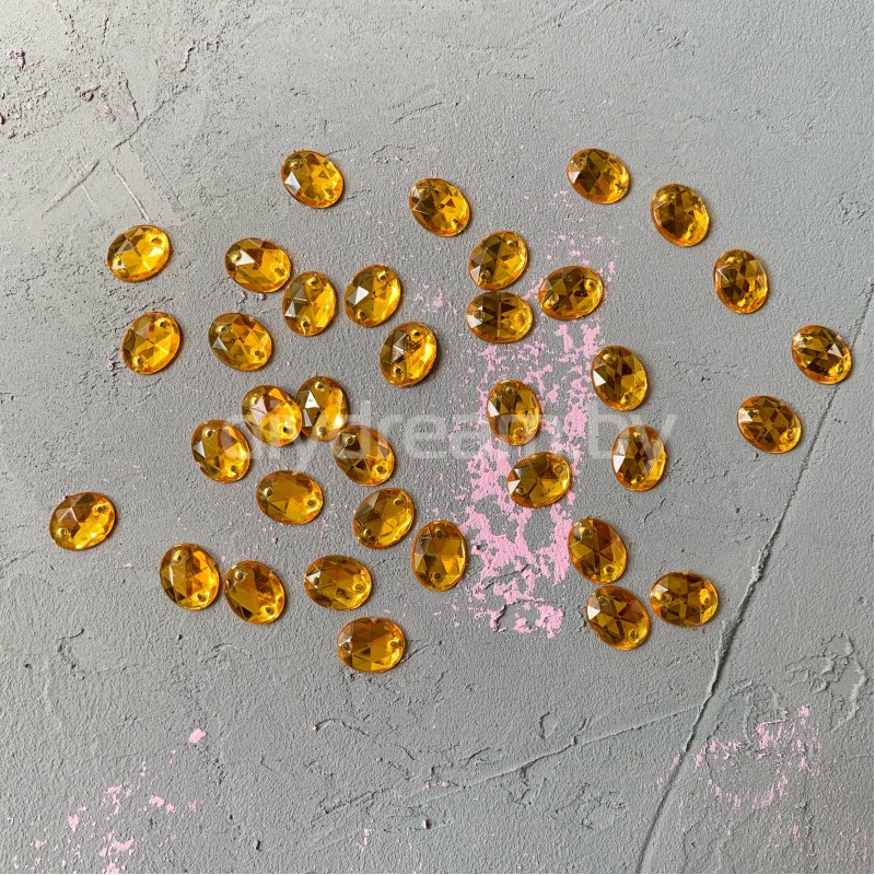 Стразы пришивные акриловые овал 8х10 мм, цв. жёлтый