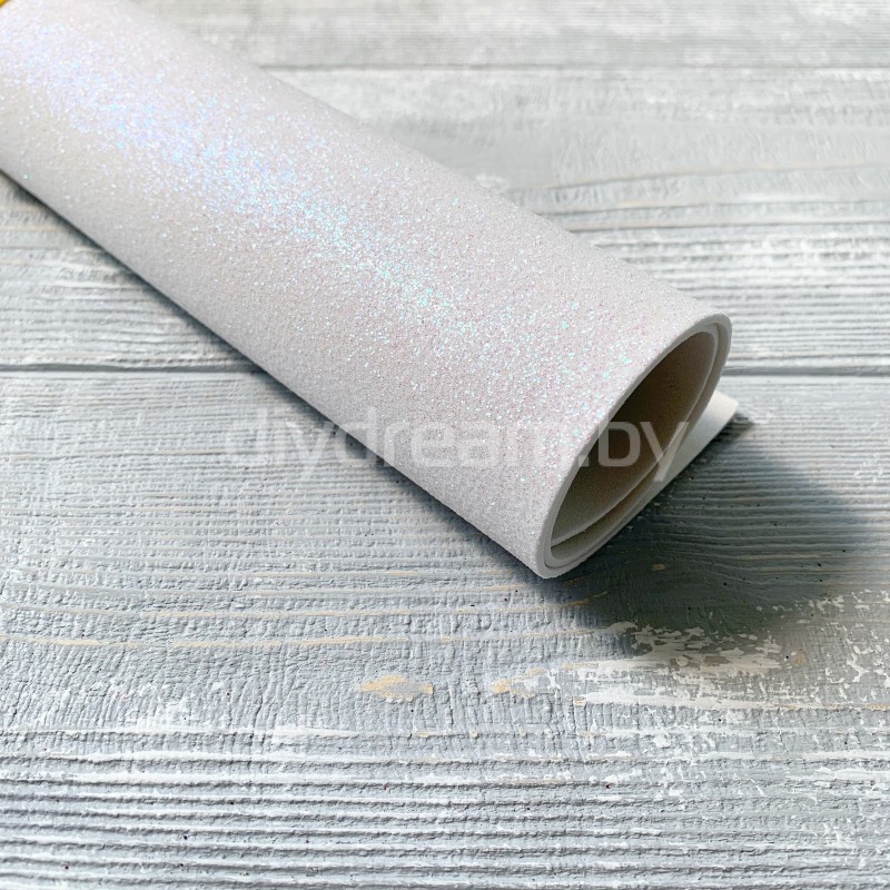 Глиттерный (блестящий) фоамиран с лицевой стороны покрыт блёстками, что даёт возможность разнообразить изделия из фоамирана и придать им сияние.