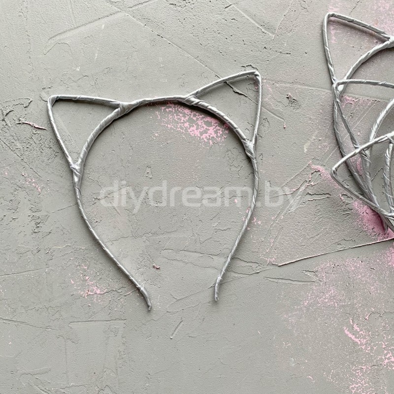 Ободок "Ушки" 5 мм ткань металлик, серебро